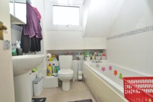 uPVC obscure double glazed window to front aspect. Suite comprising panel enclosed bath with chrome mixer tap and separate wall mounted thermostatic shower, pedestal mounted hand wash basin and low level push-button flush WC. Chrome towel radiator. Extractor.